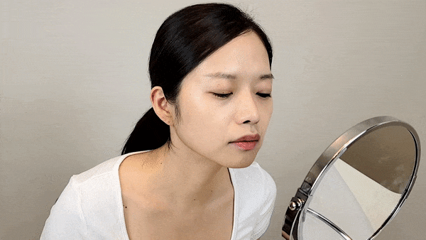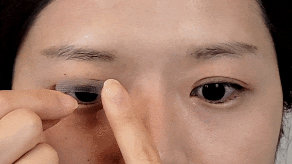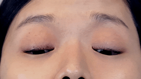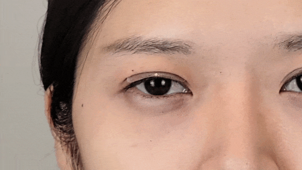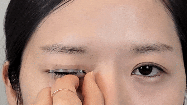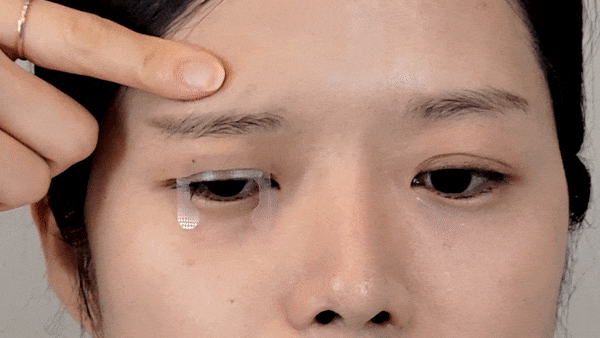 For East Asian eyelid profiles, apply the fTape at a downwards angle so that the crease formed will connect to the inner corner of the eye.
